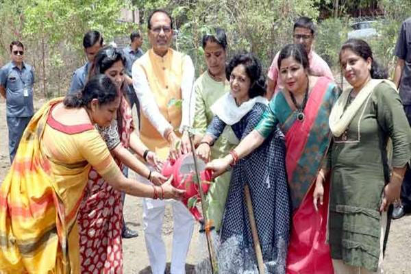भोपाल के स्मार्ट उद्यान में लगाए गए पीपल और नीम के पौधे